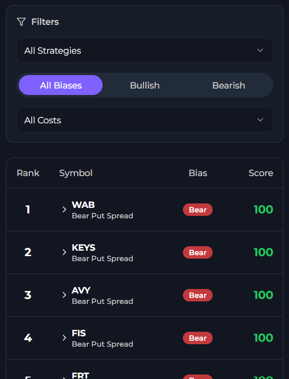Trade Ideas & Scores for available tickers
