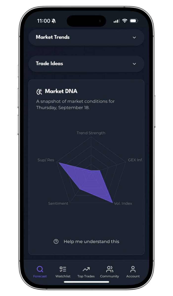 Get an at-a-glance AI outlook — bullish, bearish, or choppy — plus today’s predicted close, key support, and resistance levels. It’s like checking the temperature before heading out.
